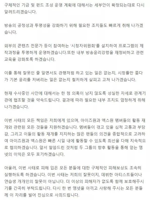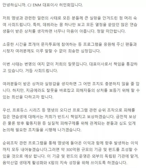 - CJ ENM의 잘못이지 연습생과 아티스트의 잘못이 아니므로 피해자 없게 보호해달라