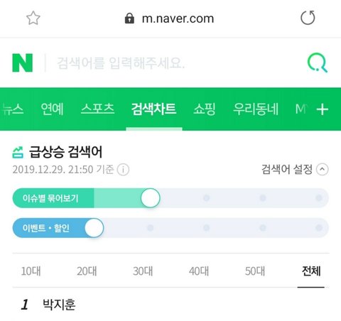 어제 갑자기 박지훈 실검 1위 떴더라