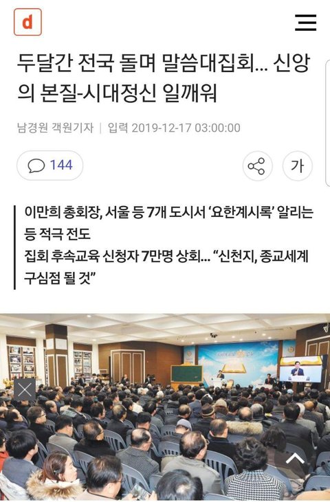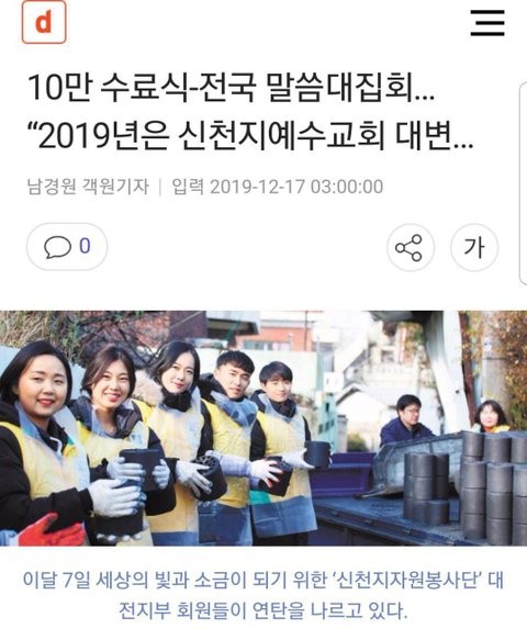 댓글봐라ㅋㅋㅋ 신천지 모임이네 아무리 너네가 세력이 거대해져도 사이비는 사이비야 어디서ㅋㅋㅋ