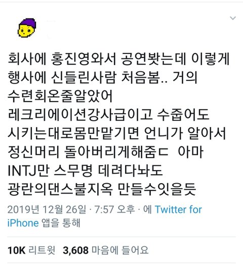 우리회사 보수의 끝인데도 진짜 신나게 놀아서 와 홍진영 진짜 멋있다 했는데.. 페스티벌에 나타나서 찢은 홍진영 보고 와.. 우리회사에서 얼마나 재미없었을까 싶었음ㅋㅋ 다들 나름 만족하고 가셨는데 그곳에서 본 홍진영은 진짜 걸크였닼ㅋㅋㅋ