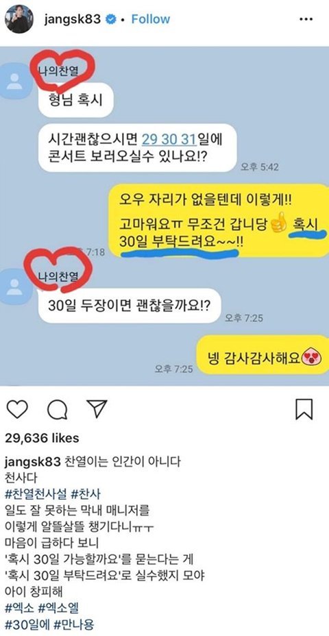 이런거 보면 찬열이가 주변 사람들 참 잘챙기는듯ㅎㅎ