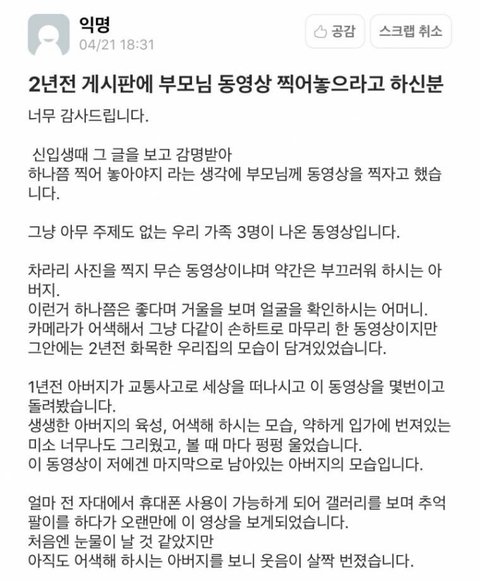 그러고 보니 내 핸드폰에 부모님 사진이 없네....
