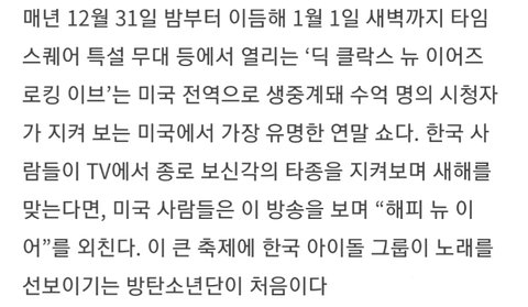 오늘 방탄소년단이 나오는 미국 최대 연말 공연
