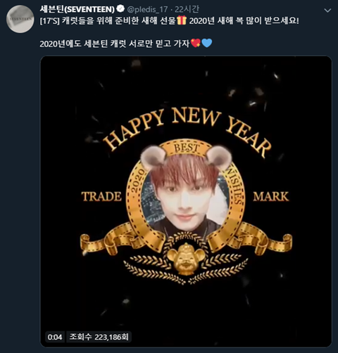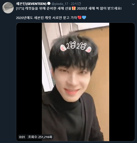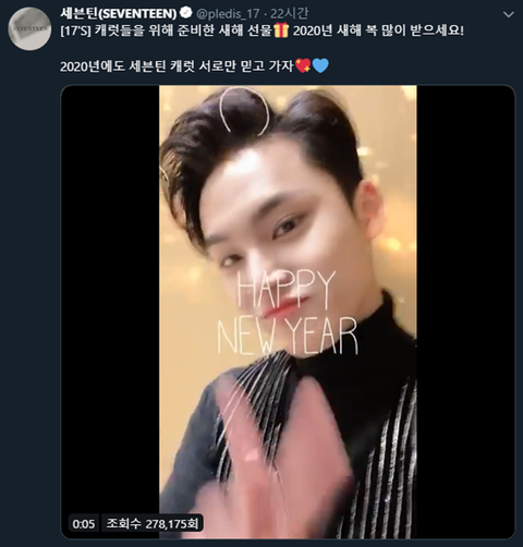 세븐틴이 새해라고 캐럿들한테 선물 영상 올림