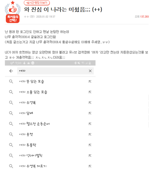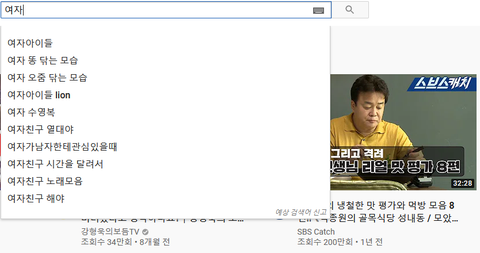 1.한국 남성들이 이상한 검색 계속해서 유투브에 자동완성 된다고 선동함