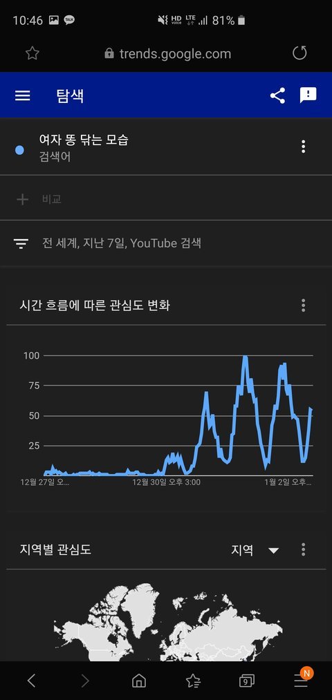 구글에서 직접 제공하는 트랜드 검색어 확인기임.