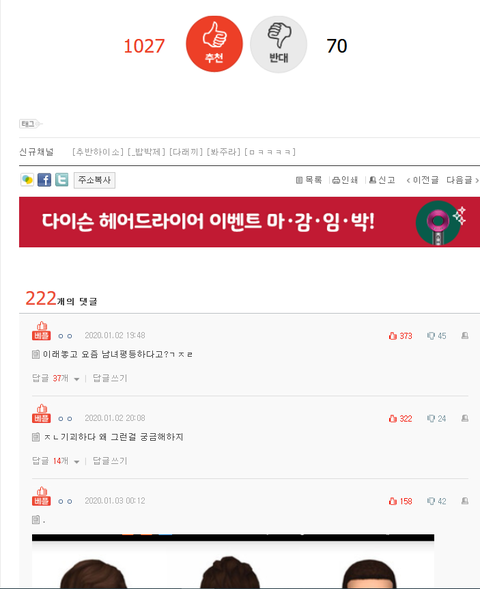 조회수와 댓글수에 비해 4자릿수를 뚫는 추천수와 베댓들.