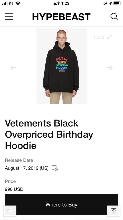 그리고 이 후드티는 정말 백만원이 넘는다고 한다.