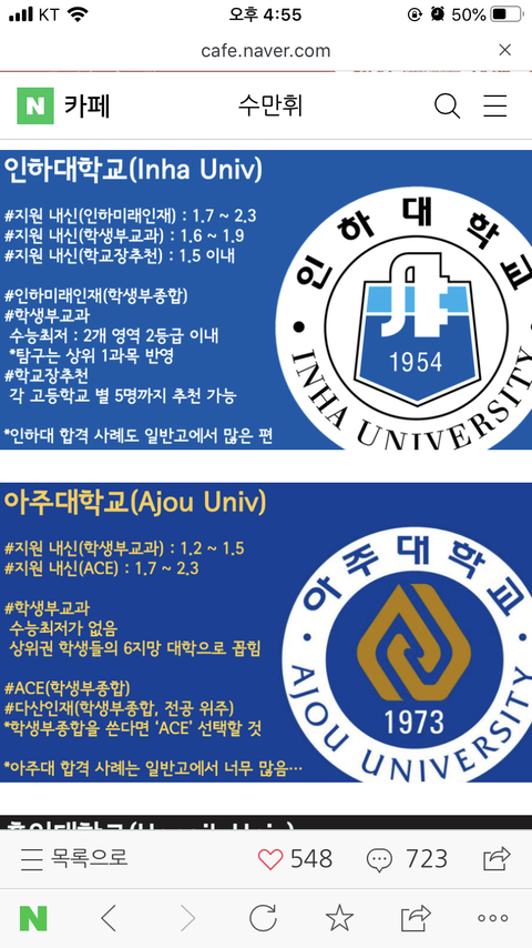 아주 인하가 공대쪽이 쎔ㅇㅇ 저건 아마 공대기준이지않을까