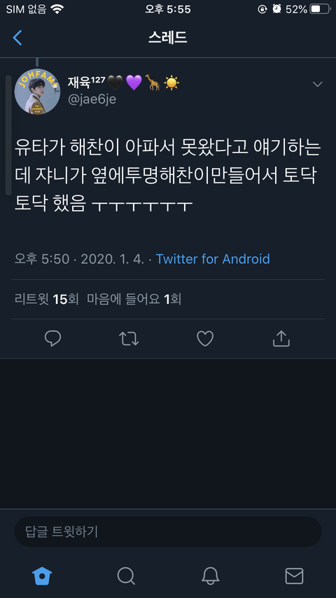 유타가 해찬이 아침부터 몸상태안좋았다고...
