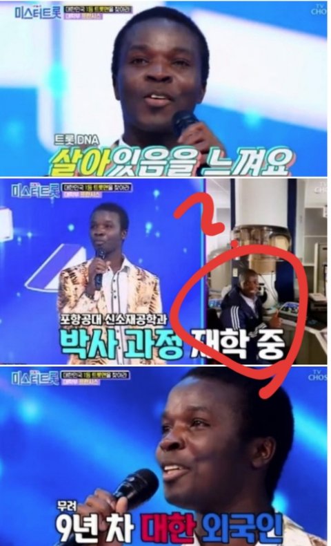 근데 미스터 트롯보는데 그 흑인이랑 비슷한사람이 나오는거임 심지어 포항공대 다닌데 그래서 좀 닮은 사람인줄 알았는데