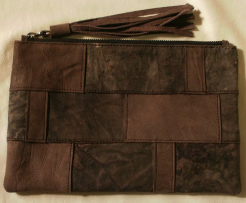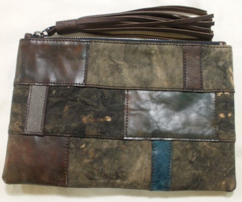 양가죽과 천연염색 원단을 매치하여 제작한 패치 클러치백입니다.(마디샤)
