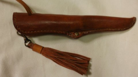 가죽에 염색하거 성형하여 제작한 핸드메이드 목걸이형 나이프 케이스입니다.(마디샤)
