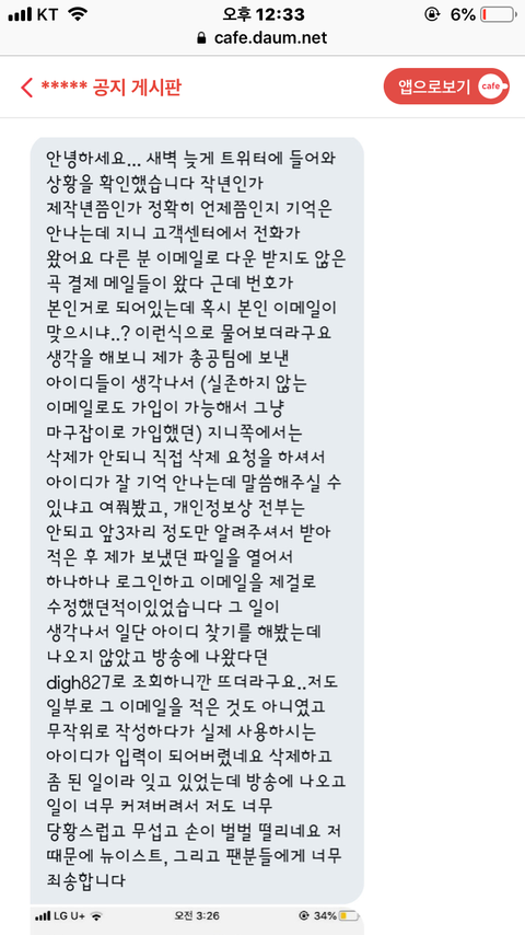 그알 방송에 나왓던 아이디를 생성한 팬분이 나오셨습니다