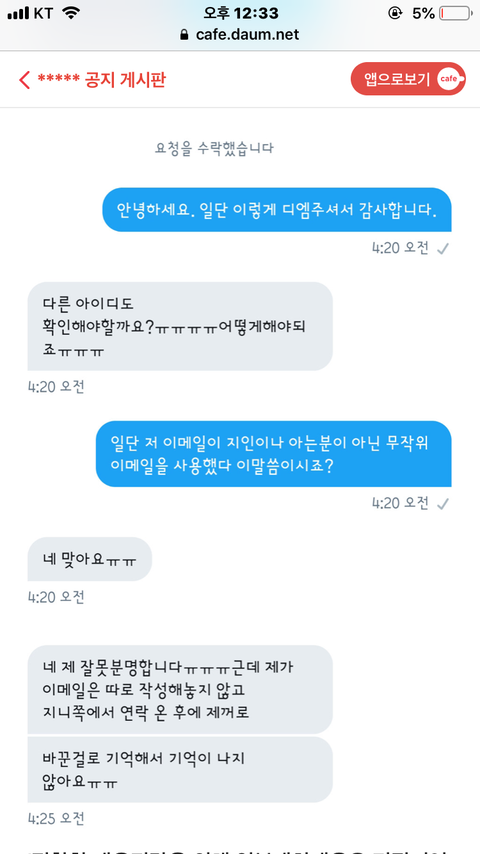 아래는 팬분과의 디엠 내용 및 최종 정리