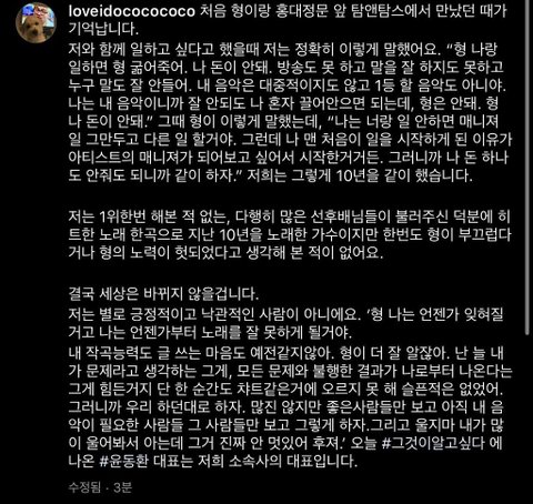 그리고 그알 본방사수한 정준일이 쓴 글