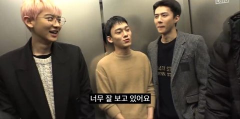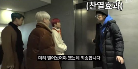 찬열 : 엘리베이터 아직 안 열어 놓으셨어요? (장난질)