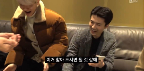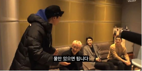 나머지 엑소 멤버들 도착했다고 먼저 온 멤버들한테 물 알아서 떠먹고 있으래ㅋㅋㅋㅋㅋ