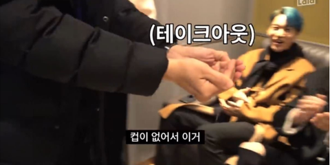 세훈이 버블티~ 백현이 보리차 같은 아메~ 주다가 수호가 빨대 달라고 하니까 던져주는 것도 웃기고