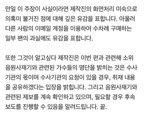 정말 누가 시켜서 하는 듯한 사과문 저희도 정말 유감입니다.