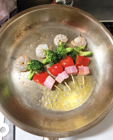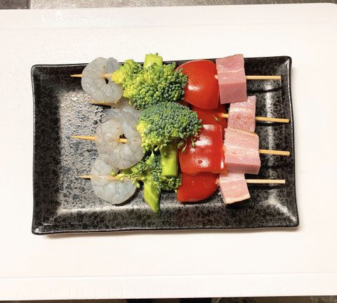 동강동강 잘라놓고 소스는 굴소스 ,케찹, 발사믹, 매실액, 후추 조금씩만해서 만든다.꼬치는 취향과 식성대로 끼워주고무염버터에 구워준다.