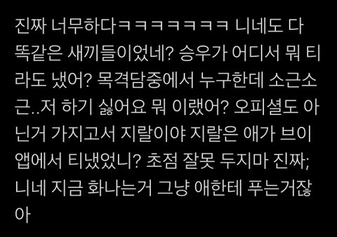 그냥 빅톤 잘 되고 내새끼는 갈 데 없으니까 찡찡대는 걸로 밖에 안 보임 한승우 앰 아닌데 대체 왜 해체가 한승우탓임 ㅋㅋㅋㅋㅋㅋ