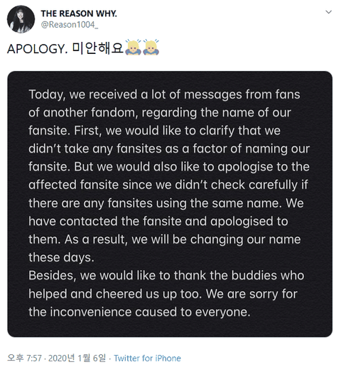 모 팬덤이 패서 사과하고 홈 이름 바꿈