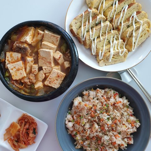 명란계란말이, 명란새우볶음밥, 차돌된장찌개에요!