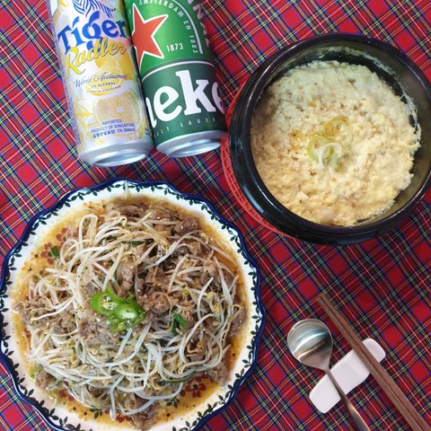 친구들 초대해서 차돌숙주볶음이랑 새우계란찜을 했습니다!