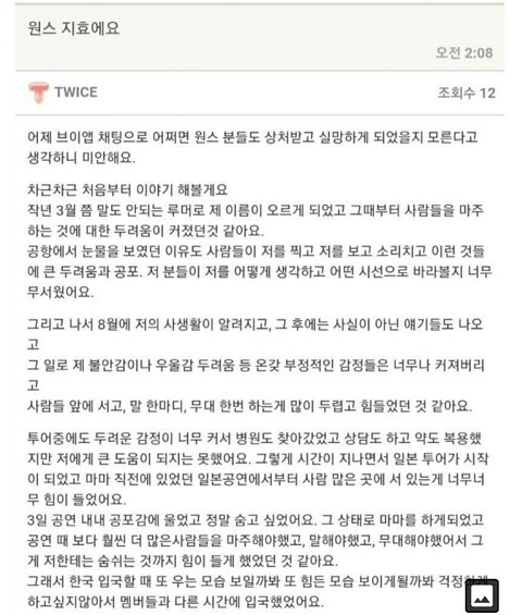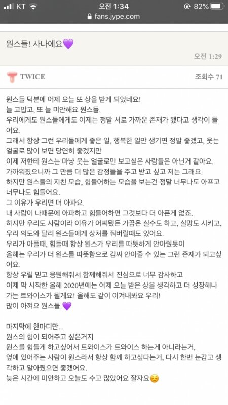 저는 제가 좋아하는 트와이스가 자신과 관련된 악의적인 글이나 댓글을 보고 속상해하지 않았으면 좋겠습니다.