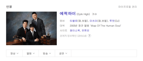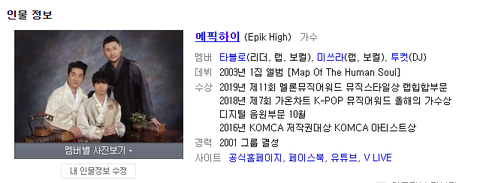 원래 검색하면 나오는 에픽하이 프로필