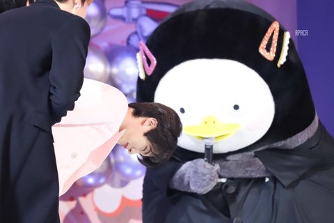 펭수가 무릎 꿇고 인사해서 같이 무릎 꿇고 인사해주는 방탄 뷔ㅎㅎ