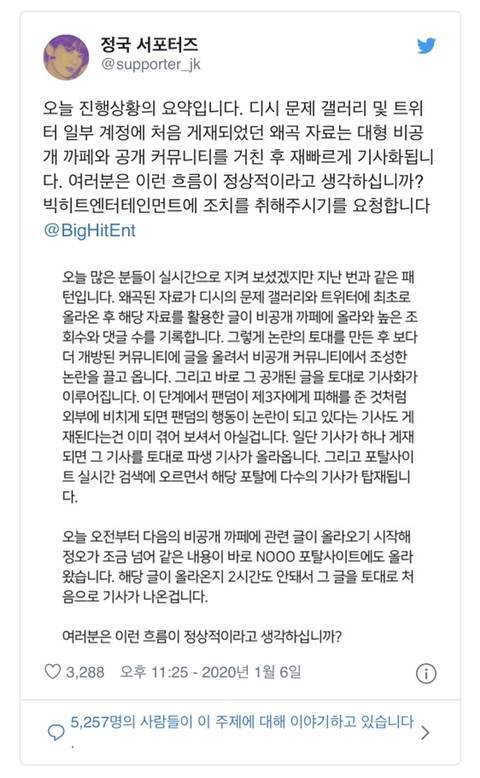 몇년전부터 방탄에게 악의적인 루머 양산해서 퍼트리는 무리가 있는데