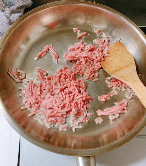 팬에 기름을 두르고 다진 고기를 볶아준다.