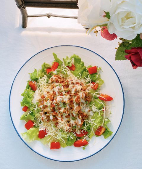 야채 중 보통 토마토를 토핑하지만 집에 남아있는 파프리카로 대신했다.