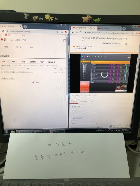유튜브 스트리밍 관리페이지 + 네이트판 내가 쓴글 한페이지에 같이 띄워놨습니다