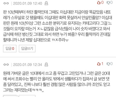 9. 글삭되니 01들 갑자기 20대들 텃세 탓하면서 입싹닫고 니네도 새내기였지 않냐 귀엽게 봐주라, + 이제 더이상 관련글 올려서 분탕치지말자 시전중