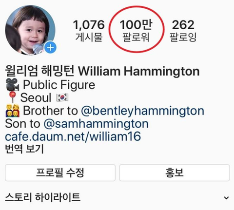 윌리엄의 인스타 팔로워 백만명 돌파 소식에 사람들이