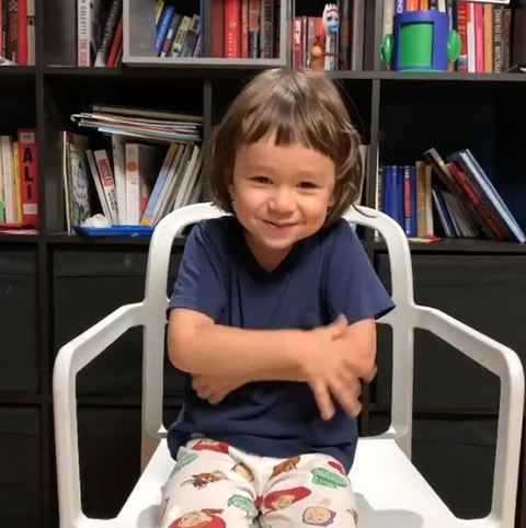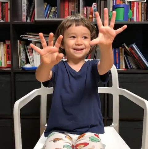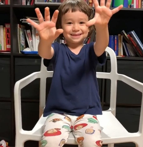 의자에 앉은 윌리엄은 손가락 열 개를 활짝 펼치며