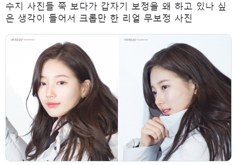 보정이 무슨 의미가 있나 싶은 수지 얼굴