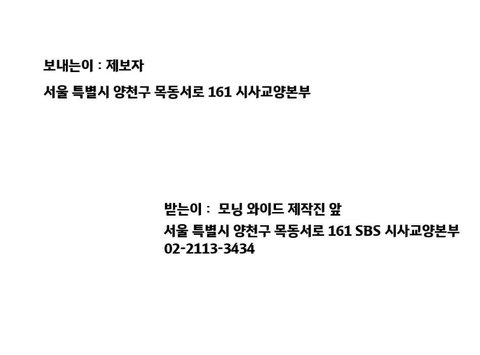 서울 특별시 양천구 목동서로 161 SBS 시사교양본부 모닝와이드