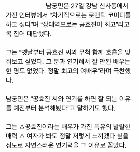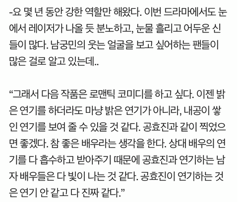 이러한 남궁민이 인터뷰를 통해 꽤 여러번 언급한 배우가 있음
