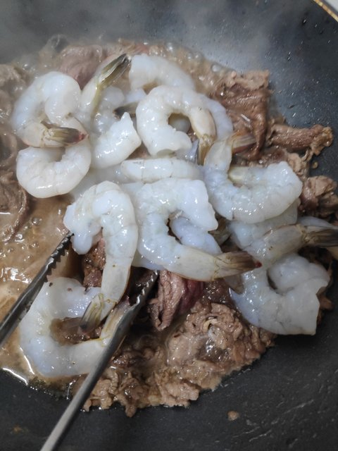 반 익을때 새우 넣어 익히기