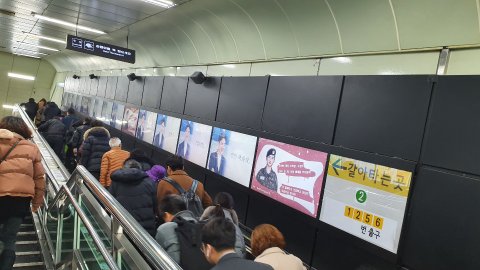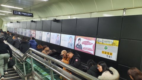건대입구 환승 통로에도, 홍대입구에도