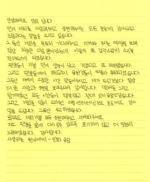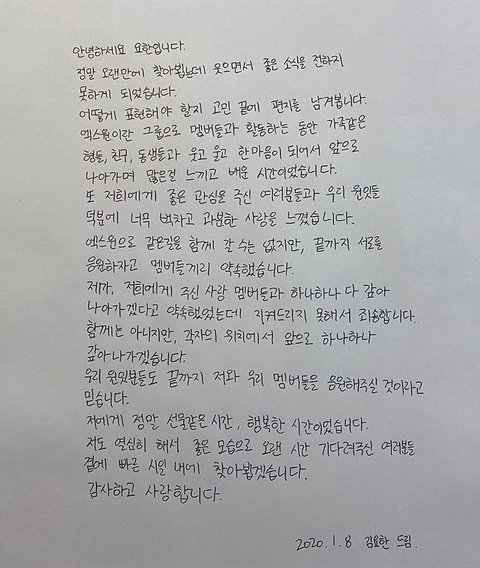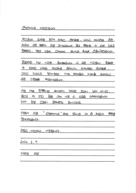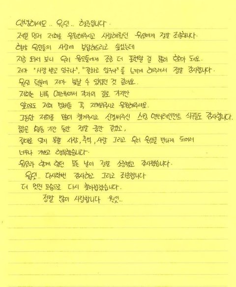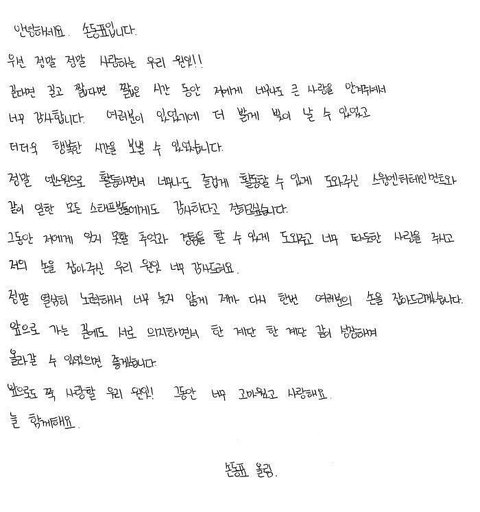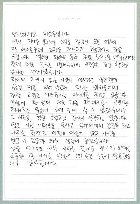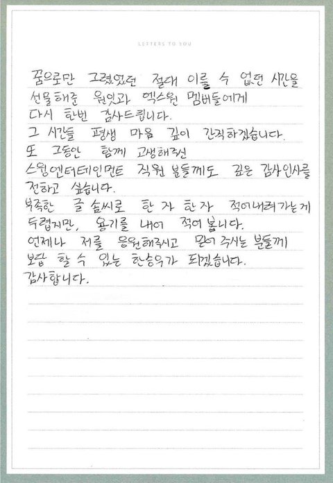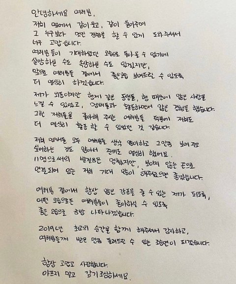 엑스원 멤버들 손편지 쓴거