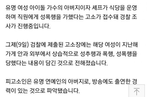 여자아이돌 아버지 성폭행 혐의 조사