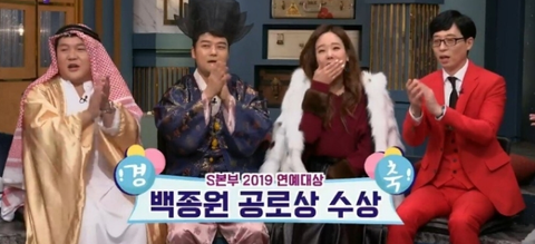 백종원이 SBS 연예대상 공로상 수상한 거에 대해 축하하고 있었음