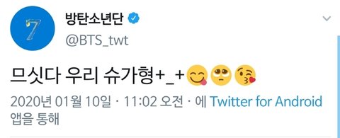 누우가 슈가형이 그렇게 좋아서 트윗을 한거야