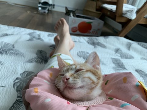 원래 내 무릎은 주인님껀데.....