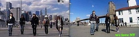 브루클린다리에서 원더걸즈가 걷는 장면. 맨하탄의 경치를 강건너에서 볼 수 있는 명소! 왼쪽엔 아이스크림 팩토리의 흰 건물이 있는데 이 곳에 가면 꼭 저 아이스크림을 먹어봐야 한다고..ㅋㅋ